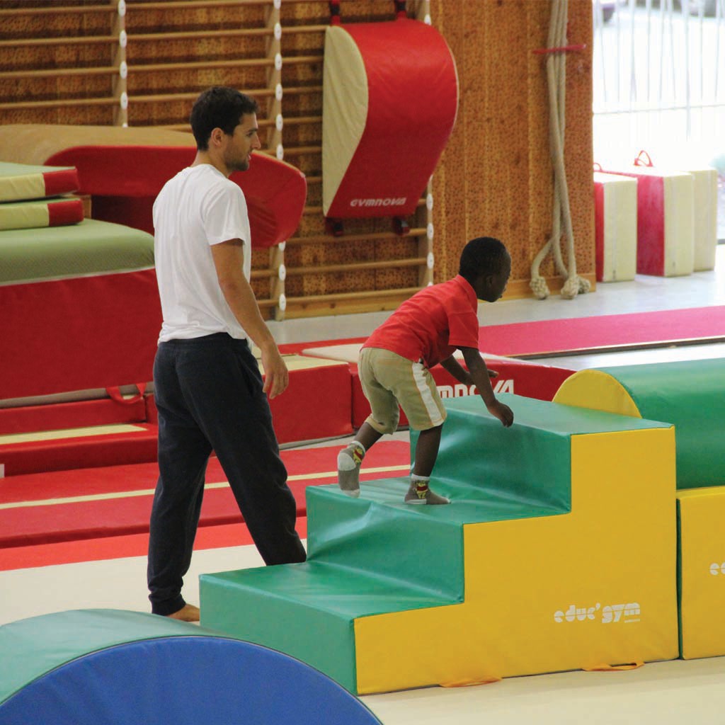 Gymnova steps module stryrofoam for greater lightness. Size 114 x 100 x 72 cm. Step height 24 cm. Cover in 1,000 denier PVC, M2 fire classification. Anti-slip underside. 4 carrying handles.