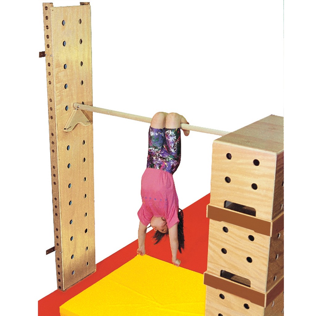 Designed to be fixed to the wall. Bars, balance beam, and benches can be hooked to the panel instead of to bases.