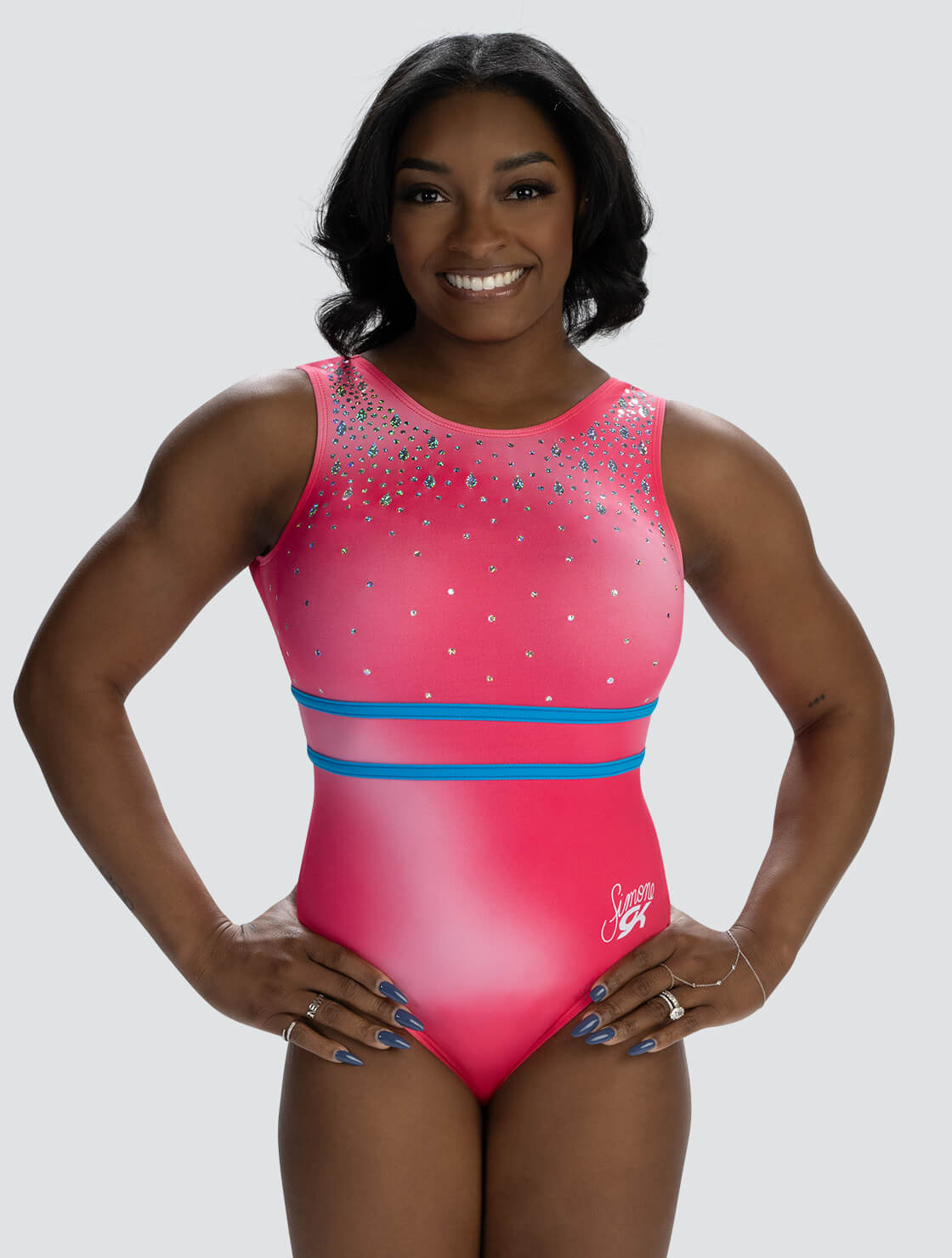 Simone Biles Star Energy voimistelupuku on suunniteltu liikkumaan urheilijan mukana vauhdikkaissa harjoituksissa. Yhteistyössä Simone Bilesin kanssa luotu malli yhdistää dynaamisen korallikuvion ja hopeiset Hologram Spanglez™, jotka tukevat energistä voimistelua.